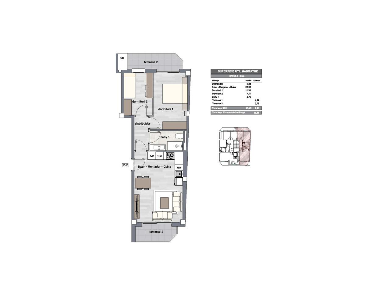 • Superficie total 56 m2